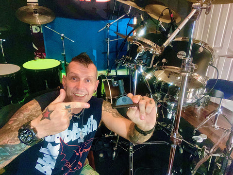 And then my whole world changed, I discovered KBrakes! I found these little beauties online and immediately ordered a pair. I attached them to my kick drum spurs the day they arrived at my home studio and lo and behold a lifelong problem solved! that kick does not move, and i kick the hell out of my kick drum! Took them out on tour with KMFDM, and The Dwarves and various other bands i've played with, the result being a non moving bass drum, a very happy drummer (me!) and happy drum techs, stage/drum riser owners all over the world! I never go on tour without KBrakes now, as well as on my kit in my home studio, I can't believe these things didn't always exist, total lifesavers! ”